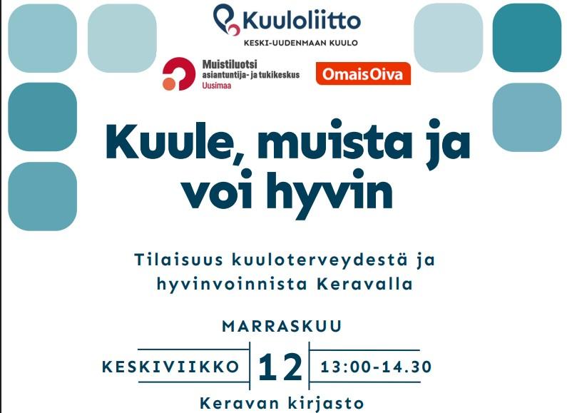 Tervetuloa osallistumaan tapahtumaan, joka keskittyy kuulon, muistin ja hyvinvoinnin teemoihin. Mitä uutta hoitamattoman heikentyneen kuulon ja muistin yhteydestä tiedetään? Kuinka voit itse vaikuttaa…